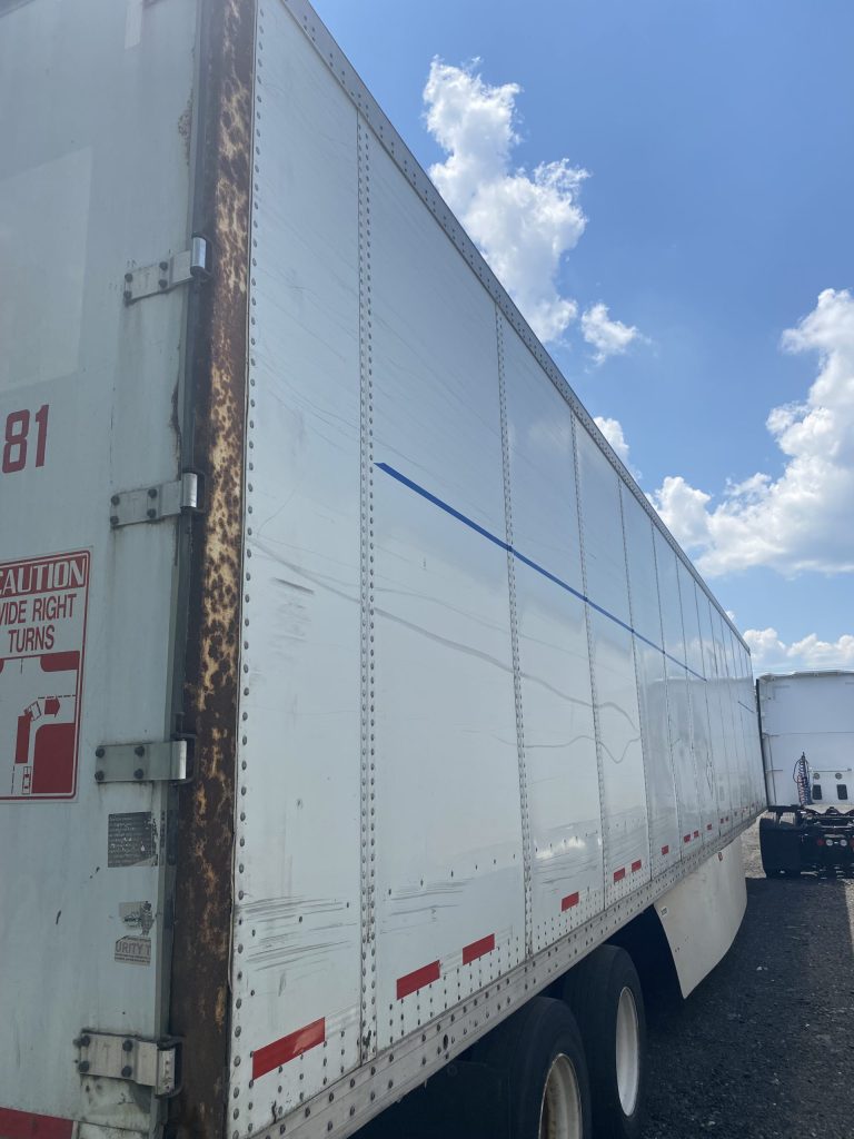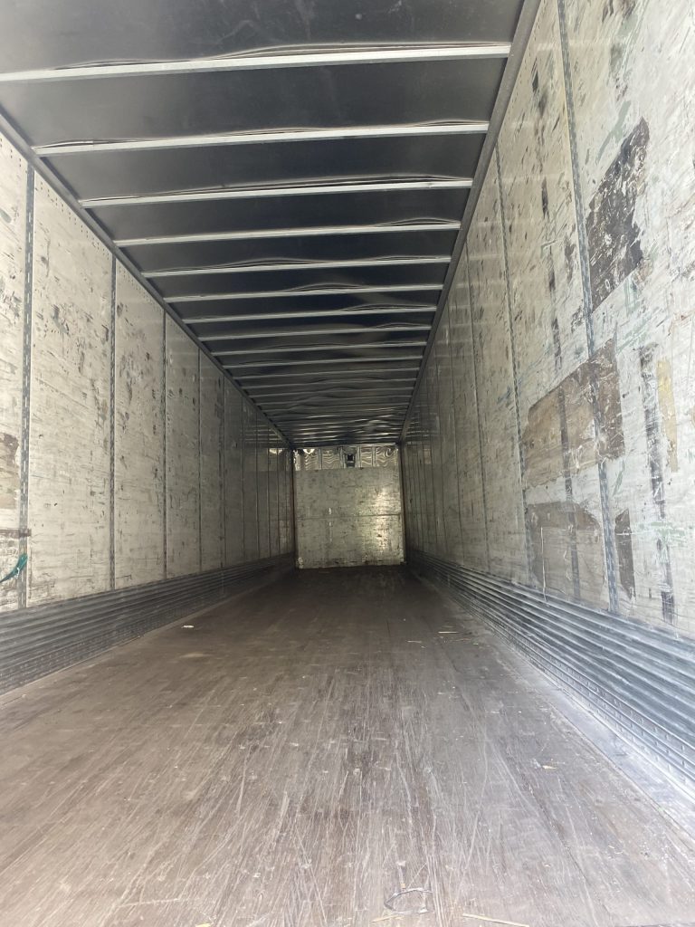 with swing doors, air ride, wooden floor and aluminum roof .