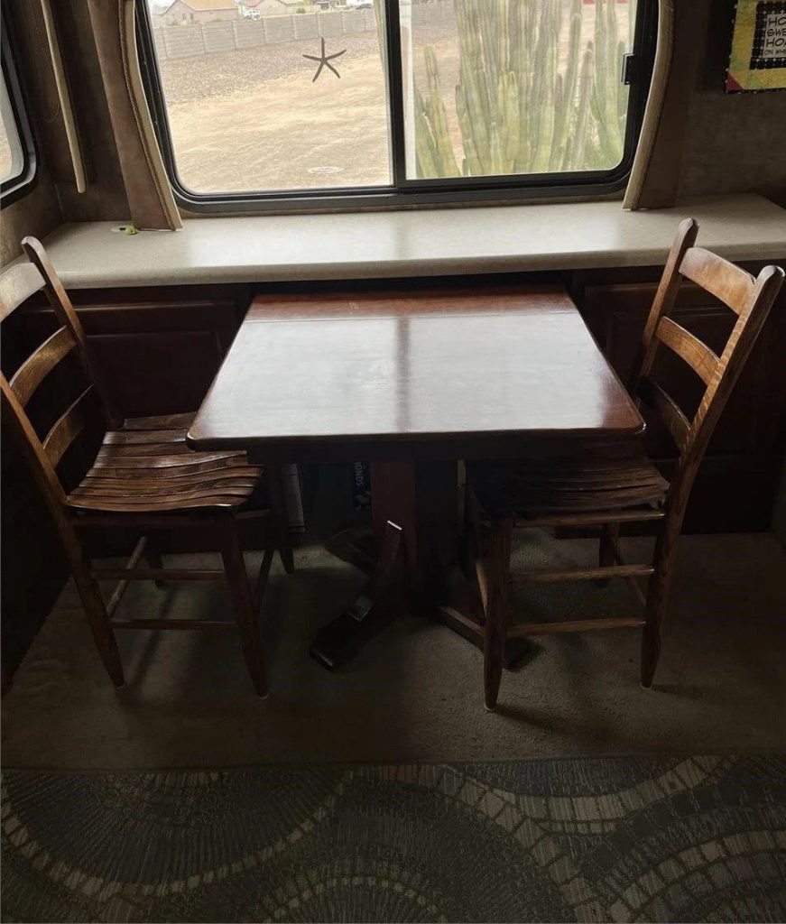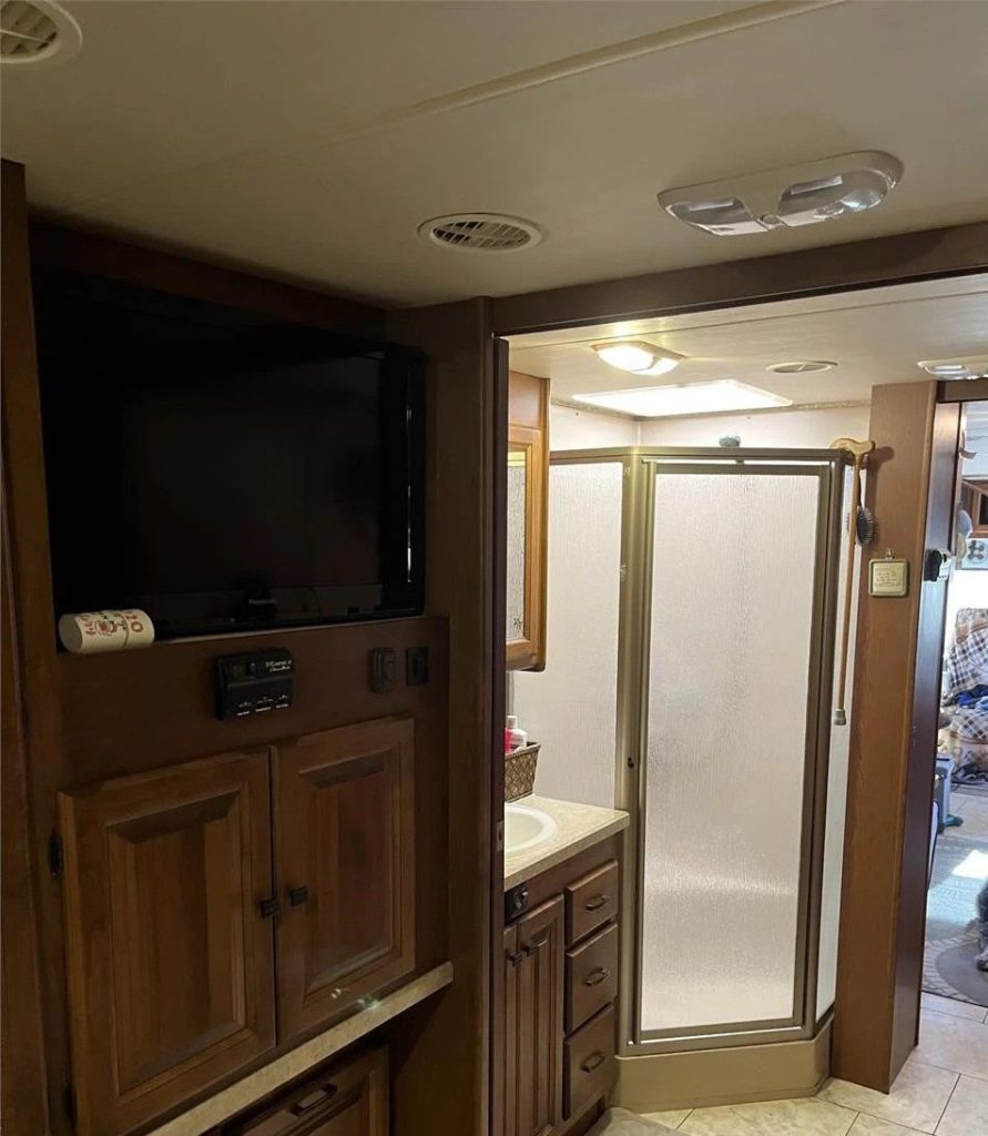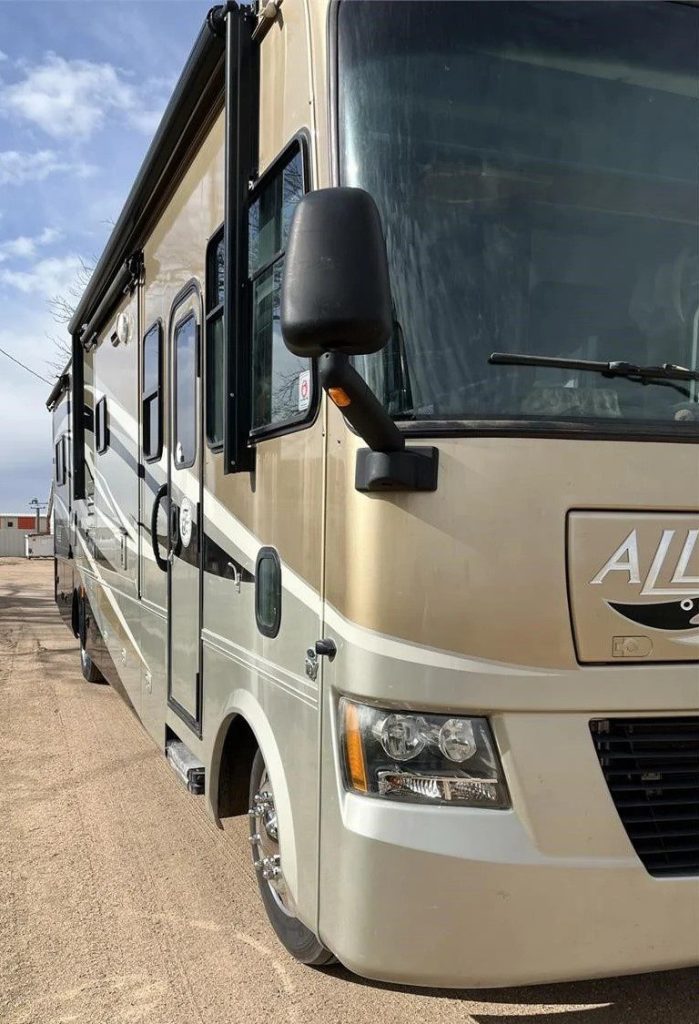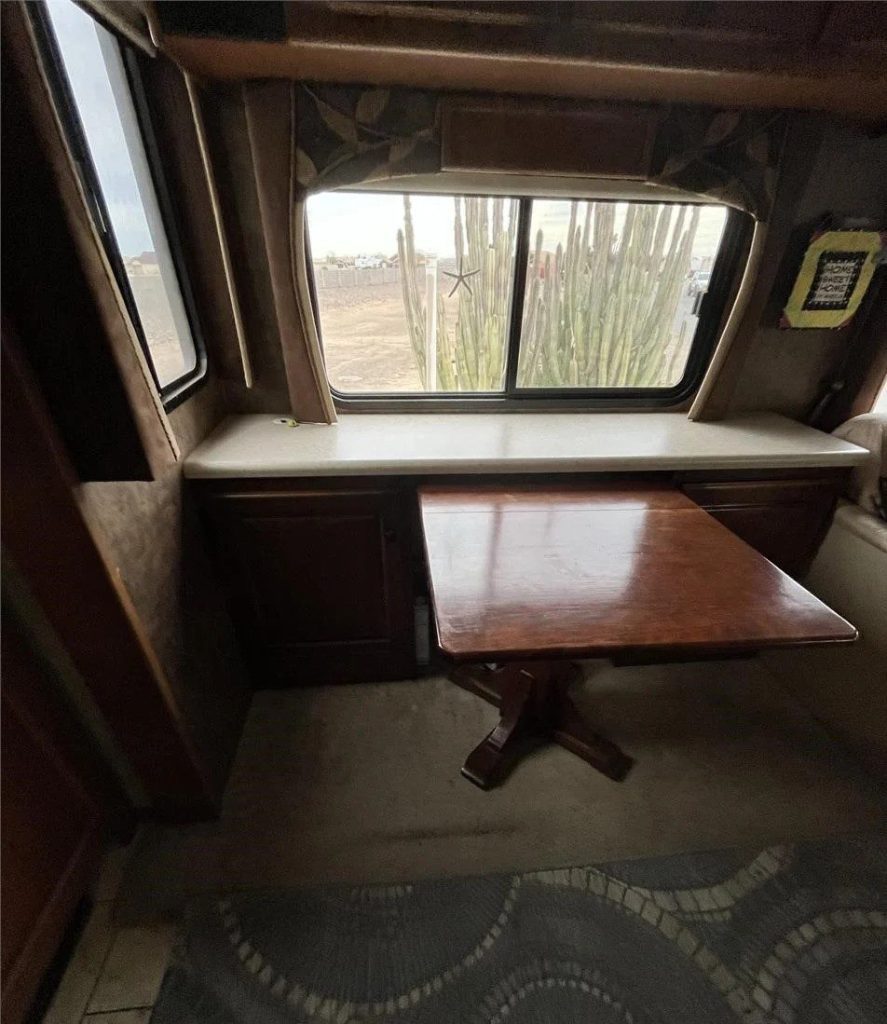 66,685 mi, Gold/black exterior, three slide outs, runs good, has been stored indoors when not using exterior looks brand new. Interior is dark wood, great condition, one owner. Upholstery shows wear, reupholstered three cushions on sofa and also captain chair on passenger side in 2011, extras include wheel covers, privacy screens for outside on windshield and two windows, heavy duty sway bars, towing package, easy brake for the car your towing. Custom built cabinet and black walnut table that slides in between the two cabinets, a leaf for table. I kept my computer and printer on one side, extra storage in the other one.. one owner.