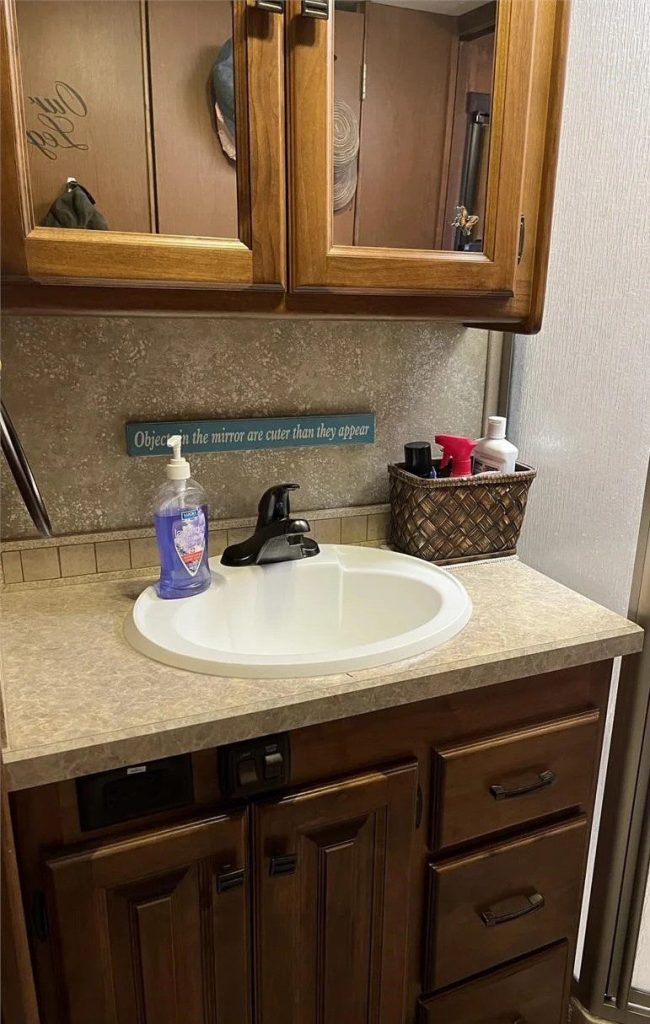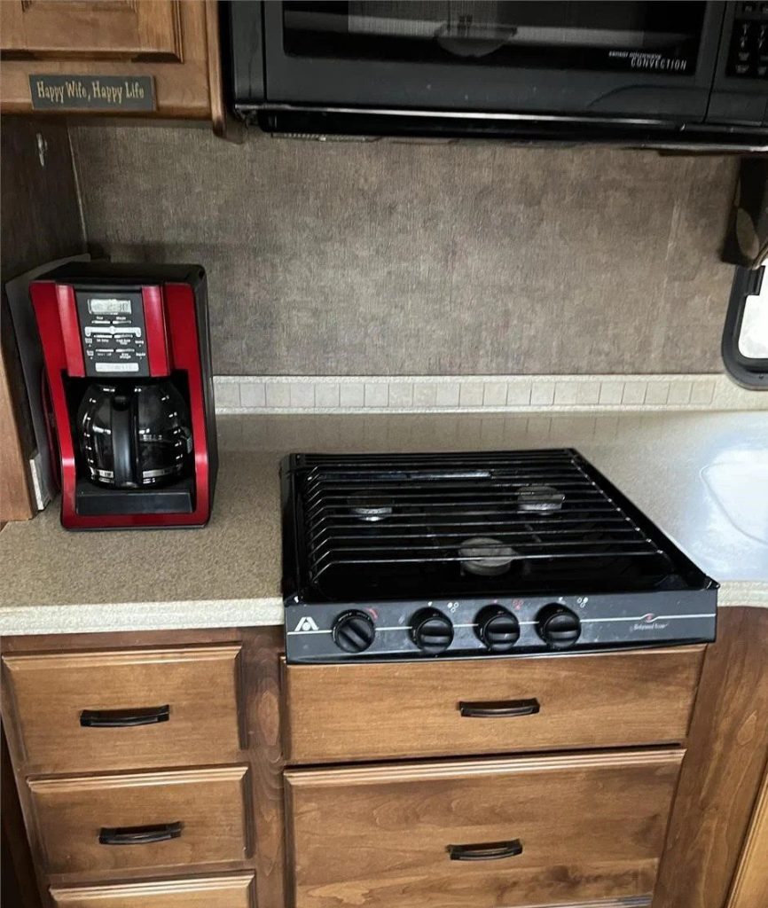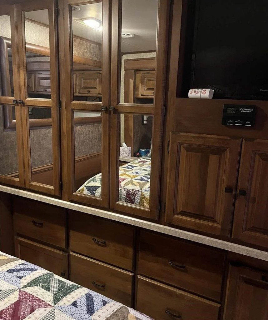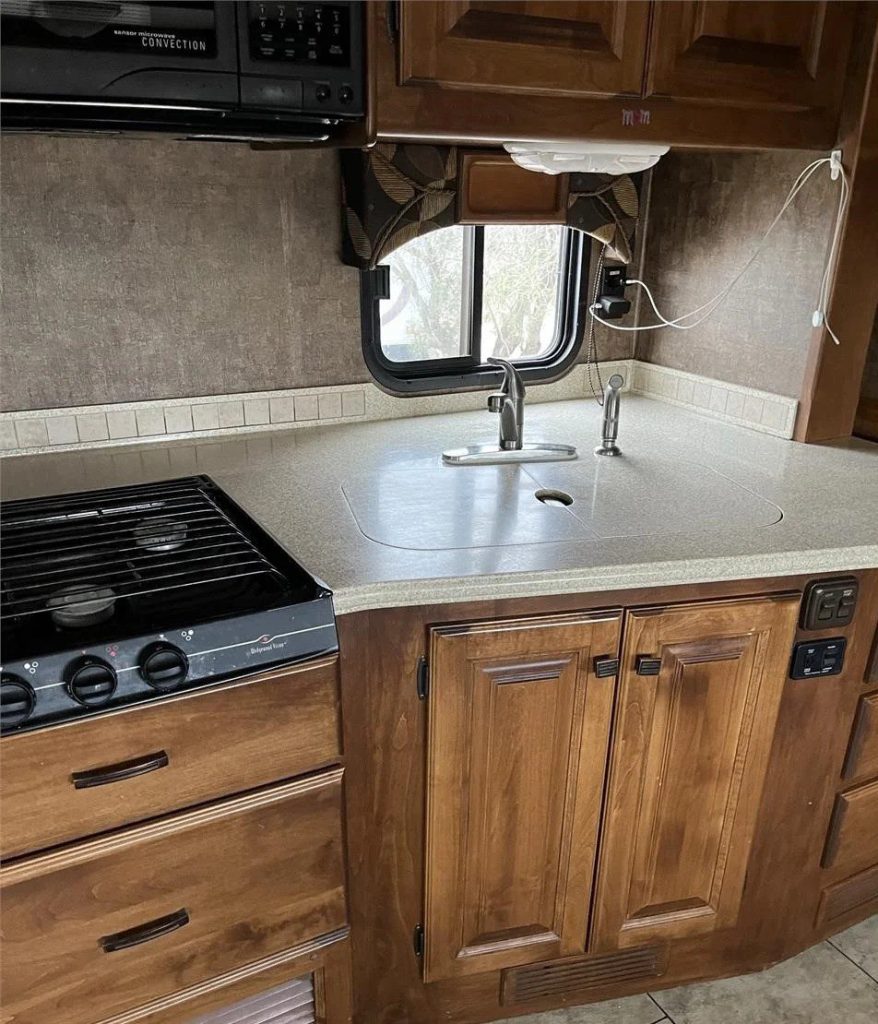 66,685 mi, Gold/black exterior, three slide outs, runs good, has been stored indoors when not using exterior looks brand new. Interior is dark wood, great condition, one owner. Upholstery shows wear, reupholstered three cushions on sofa and also captain chair on passenger side in 2011, extras include wheel covers, privacy screens for outside on windshield and two windows, heavy duty sway bars, towing package, easy brake for the car your towing. Custom built cabinet and black walnut table that slides in between the two cabinets, a leaf for table. I kept my computer and printer on one side, extra storage in the other one.. one owner.
