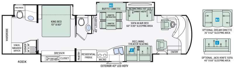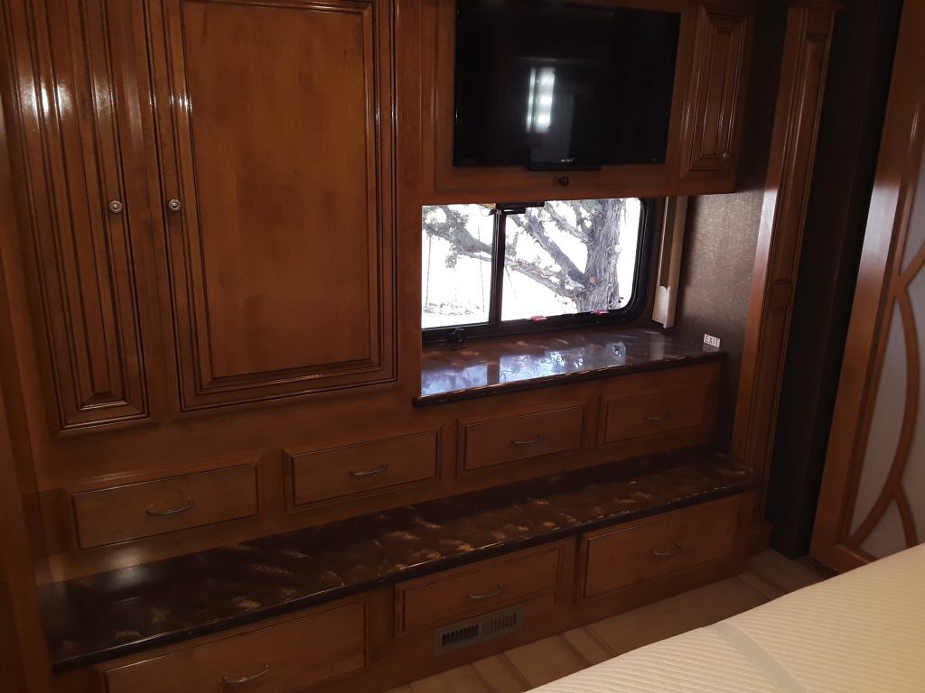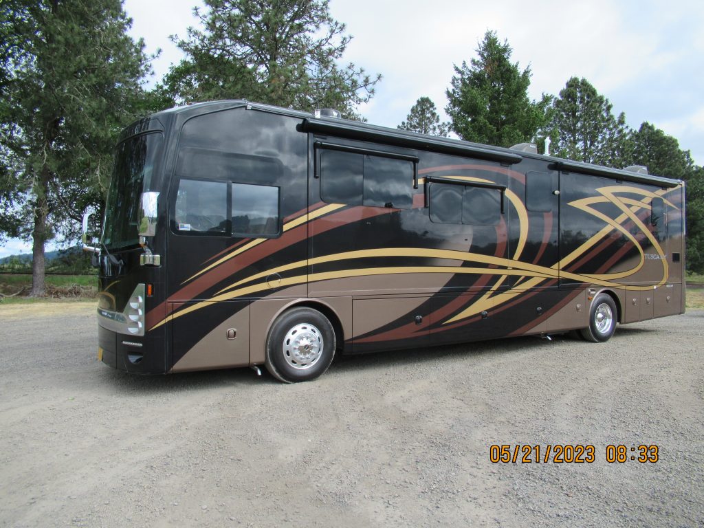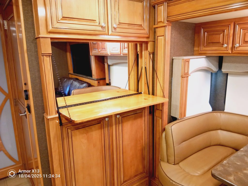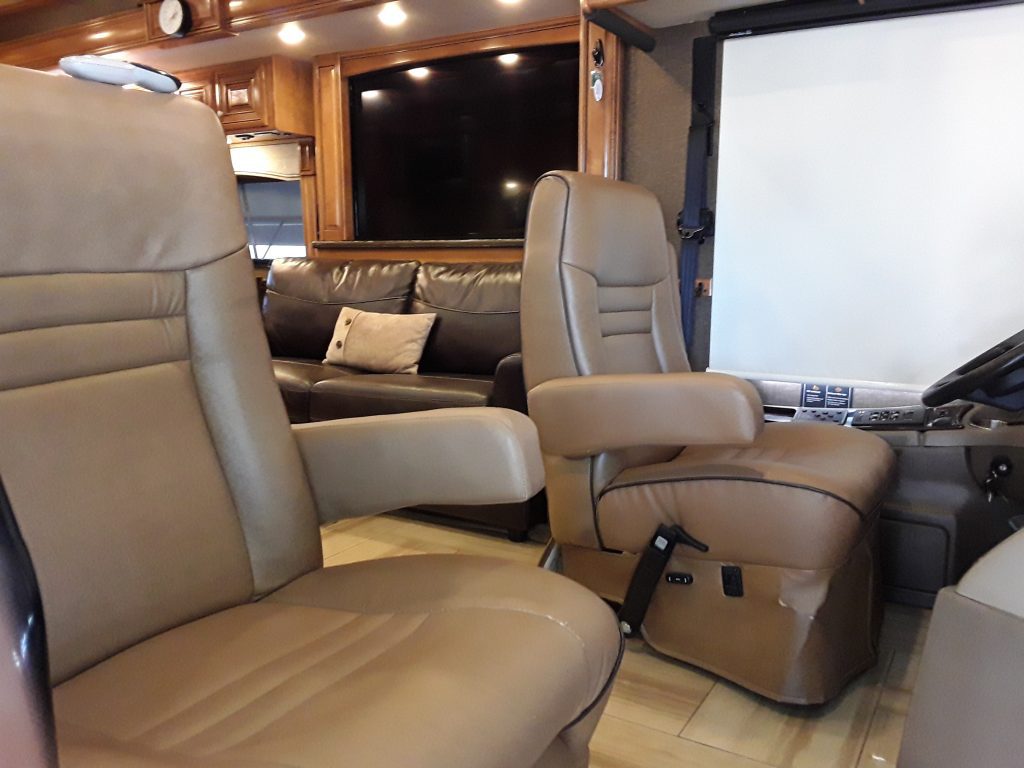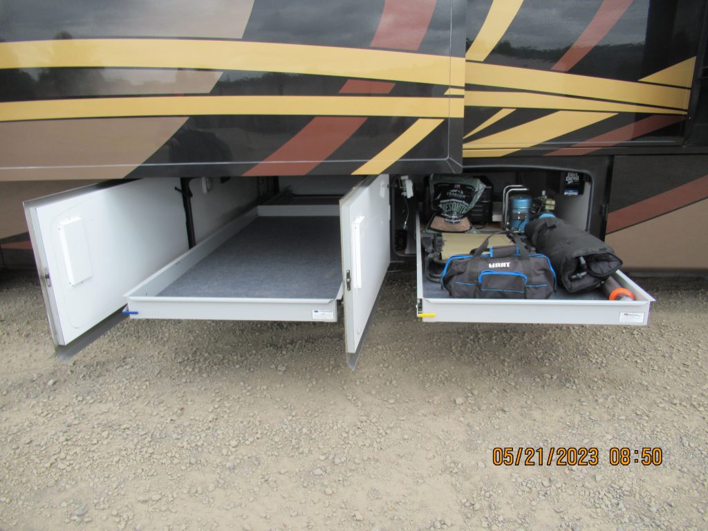 Freightliner® XC-R Chassis, Cummins® ISL Engine with 450HP & 1,250 lb.-ft. Torque, 6-Speed Allison MH-3000 Automatic Transmission, ZF® Independent Front Suspension with 60° Wheel Cut, Full Air Front Disc & Rear Drum Anti-Lock Brakes, Exhaust Brake, 150-gallon Fuel Tank, Full-Body Paint Package with Gel-Coat, Automatic Leveling Jacks with Touchpad Controls, 2 Easy Slide Storage Trays, Power Entry & Patio Awnings with Integrated LED Lighting, 10” Touchscreen AM/FM Dash Radio with Satellite, Bluetooth®, GPS Navigation, Back-Up Monitor, Chrome Heated/Power Mirrors w/Integrated Side Cameras, Push Button Start, Reclining/Swivel Captain’s Chairs with 6-Way Power Adjustment (Reclining Passenger Seat), Driver & Passenger Overhead Storage Cabinetry, VIP Smart Wheel, Adjustable Brake & Accelerator Pedals, Cruise Control, Air Horns, Fog Lights, Electric Windshield Solar & Privacy Shades, Slow-Rise Solar & Privacy Shades, Electric Step Cover, 10,000-lb. Towing receiver with 7-pin Round Connector and air brake connector, 295/75R 22.5” TOYO Radial Tires with Aluminum Wheels, Keyless Entry System & Compartment Door Locks, Polished Porcelain Tile Throughout, LED Ceiling Lights, Decorative Ceiling Treatment with Mood Lighting, High-Gloss Glazed Cabinetry with Raised Panel Hardwood Cabinet Doors, Dream Dinette, Reclining Theater Seating with Footrest Jack-Knife Sofa, 20 cu. ft. Stainless Steel Residential Refrigerator, Electric Induction Cooktop, New 1.9 cu. ft. Stainless Steel Over-the-Range Convection Microwave Oven, Residential Dishwasher Drawer, King Size Bed, Ceiling Fan in Bedroom, 2 Macerator Porcelain Toilets, 3 TV’s, Surround Sound Blu-Ray Home Theater, Cable TV & HDMI Video Ready, Winegard™ TRAV’LER HD Satellite Dish, Cummins Onan® RV QD 10K Sliding Diesel Generator, Automatic Generator Start, 50-amp Shoreline Power w/-volt Power Retractable Cord Reel, 2000-watt Pure Sine Inverter/100-amp Converter, 950 watt solar panels with 50 amp charger, Three 15,000 BTU Air Conditioner / Heat Pumps, Energy Management System, Eight (8) Auxiliary House Batteries, Exterior GFCI Receipt, Enclosed & Heated Holding Tanks, Black Tank Flush System, Systems Control Center, Stackable Washer & Dryer, Central Vacuum System with Toe-Kick Dustpan, Aqua-Hot® 400D Hydronic Furnace & Water Heating System, Transferable United States Warranty Extended Service Eagle Guardian Protection plan good until 2/19/26 or 60,000 miles.