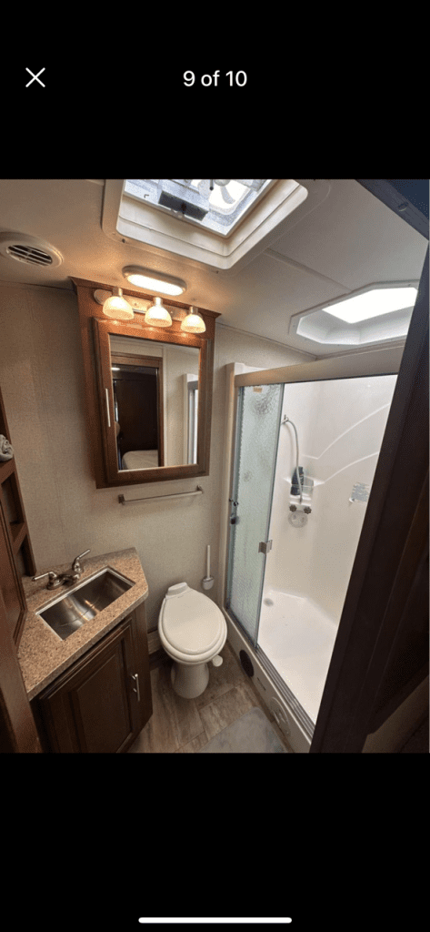 Great family RV with 2 full bathrooms!! 30,000 miles. Sleeps 9! Spanning an impressive 37 feet 11 inches, this Class A RV offers abundant spaces. Ford Triton 6.8L V10 engine with 320hp and 460 ft-lbs of torque. Automatic leveling system with snap pads.