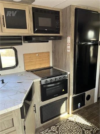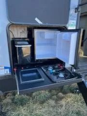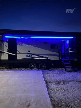 Two year old camper bought late in 2022, taken out only three times! Great features including indoor/outdoor speakers and lights, air conditioning, heater, oven, microwave, two refrigerators, ice maker, outdoor pull out grill, awning, two full propane tanks, hot water heater, and solar power backup. Sewer connections and sway bar kit included. Sleeps 6 comfortably. Has camera on back, but we never figured it out.