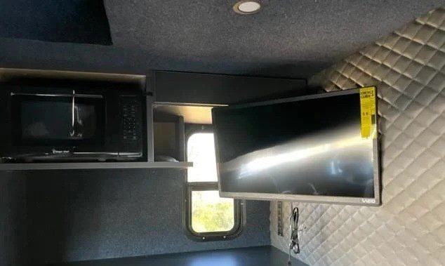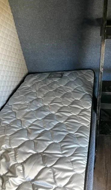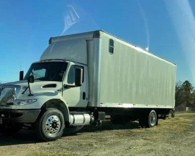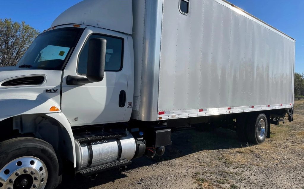 New International Box Truck MV 607 Cummins B6.7, with modified sleeper cab suited for up to 2 people, TV, fridge, converter. Aluminum Lift Gate for 4000 lbs. Door frame 98×98.