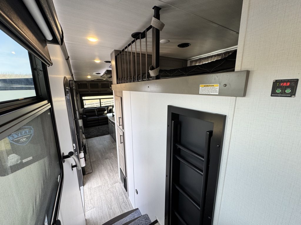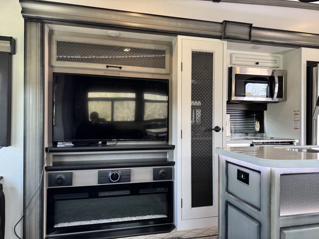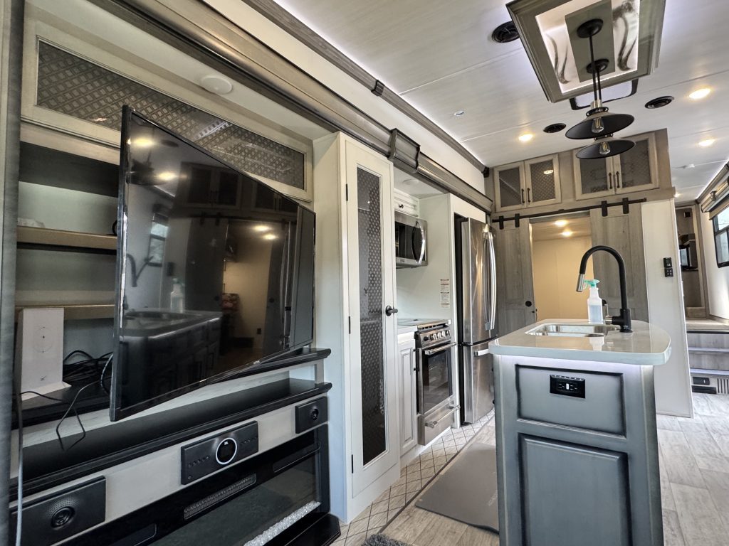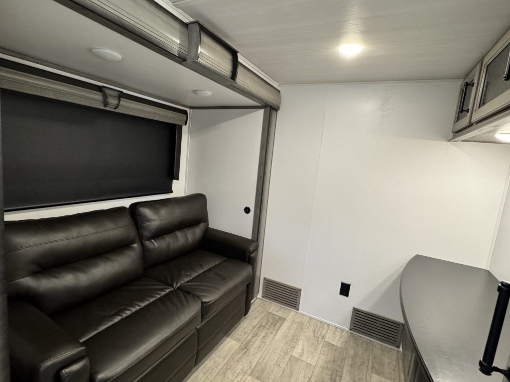 Like-new 2022 Keystone Montana 3855BR fifth-wheel RV for sale – asking $69,000. This luxury RV has only 61 towing miles and is in immaculate condition. The Montana 3855BR offers one of Keystone’s most popular layouts, featuring a spacious mid-bonus room with a built-in desk and sleeper sofa—perfect for a home office, guest room, or extra living space. The open-concept main living area includes theater seating, an electric fireplace, a large LED TV, and a full-sized sofa. The kitchen is fully equipped with solid surface countertops, a residential refrigerator, a gas cooktop, a convection microwave, and a large pantry. The king-sized primary suite features a large closet, plus a separate closet with washer/dryer hookups, and a beautifully designed bathroom with a spacious shower and single vanity. Additional highlights include an auto-leveling system, dual whisper-quiet A/C units, power awnings with LED lights, an outdoor kitchen, and generous pass-through storage. This RV comfortably sleeps up to 8 and offers residential-style comfort on the road or as a stationary home-away-from-home.