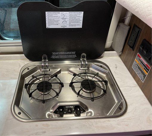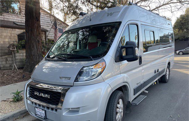 Experience the comforts of home while traveling on the road with this motorhome! The Ram 3500 V-6 with 6 speed transmission is efficient with just the right amount of power. Both front seats spin around for more living space when parked. The expandable counter space, stainless steel kitchen sink and two-burner gas stove are ideal for meal prep with plenty of cabinets and drawers. A large 6.0 cu. ft. compressor-driven refrigerator and freezer with adjacent pantry adds to the convenience. The corner bed is 49″ x 77” and the custom wood shelving adds to the built-in cabinet storage above and below the bed. The 28″ x 51″ bath has a real toilet, stainless steel sink and a shower with shower curtain enclosed by sliding door. Winnebago has added a generator, furnace/hot water heater, air conditioner, solar panels, internet, TV, microwave, inverter for 120 volts from house battery power. Well placed lighting galore, a huge awning with LED lighting strip, under carriage and outside lighting fixtures add to security and outdoor enjoyment. Outside LP outlet for fire pit or BBQ; and outdoor shower with expanded enclosure supported by rear doors. Nice size fresh water capacity of 28 gallons, grey water tank of 13 gallons, black water tank of 13 gallons and a 6 gallon LP tank.